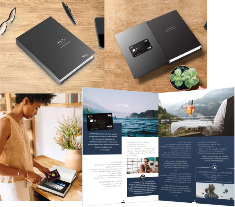 Comment fidéliser les porteurs de la carte LCL VISA Infinite et redonner de la valeur à ce segment de clientèle premium ? C’est le travail que nous avons accompli avec les équipes marché et produit LCL et VISA. En premier lieu nous avons opéré la refonte du visuel de la carte LCL VISA Infinite pour la doter d’une image plus contemporaine et responsable. Nous avons repensé tout le parcours d’accueil des nouveaux souscripteurs de la carte avec en particulier la réalisation d’un Welcome Pack durable incluant le guide de présentation de la carte et son porte-carte en cuir made-in-France. Le livret d’accueil a fait l’objet d’une attention toute particulière pour présenter les services affinitaires spécifiques de la carte LCL Visa Infinite tout comme le fonctionnement de la conciergerie.